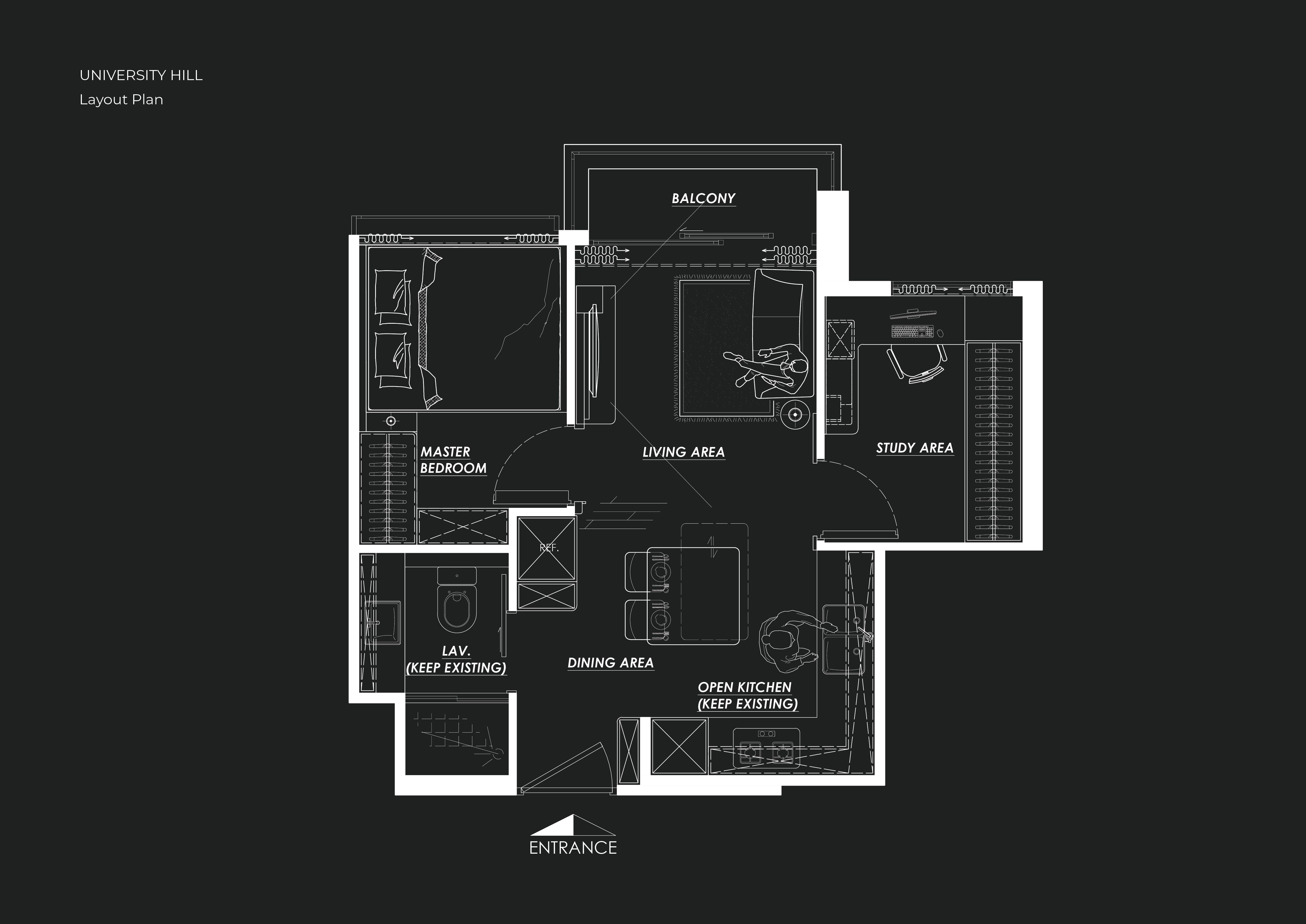 The subject unit is located in Phase 2A of University Hill, a luxury residential development consisting of 5 medium-rise blocks and around 600 peaceful residential units. Our client, the owner of this modest 2-bedroom property spanning approximately 400 sq. ft., anticipates a renovation of this newly acquired canvas into a modern marvel of simplicity and luxury.