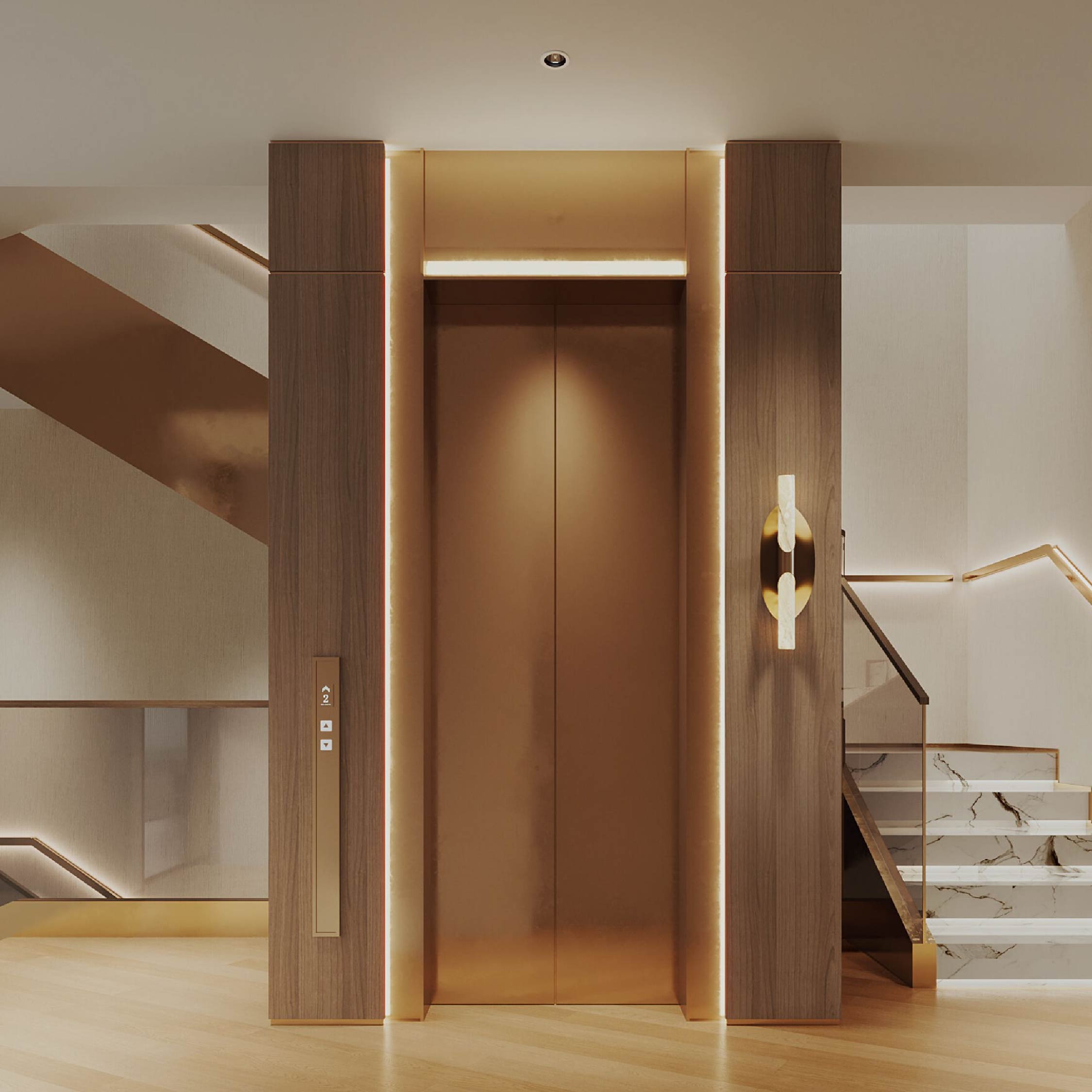 室內設計師與結構工程團隊緊密合作,將現時樓梯間位置稍微改闊,與升降機緊密連接,有如無縫地與其他區域融為一體,使屋內整體美感及和諧性得以輕鬆保留。